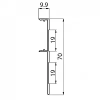 Используется в подвесной раздвижной системе с применением  симметричных вертикальных профилей, устанавливается на трек подвесной двери. Пазы на лицевой стороне могут декорироваться мебельной кромочной лентой 19 мм. При установке асимметричных вертикальных профилей не используется.