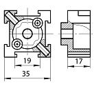 В комплект универсального соединителя входят: колодка из цинкового сплава, конусная шайба, зажимные винты, саморезы. Крепится к торцу несущего профиля.