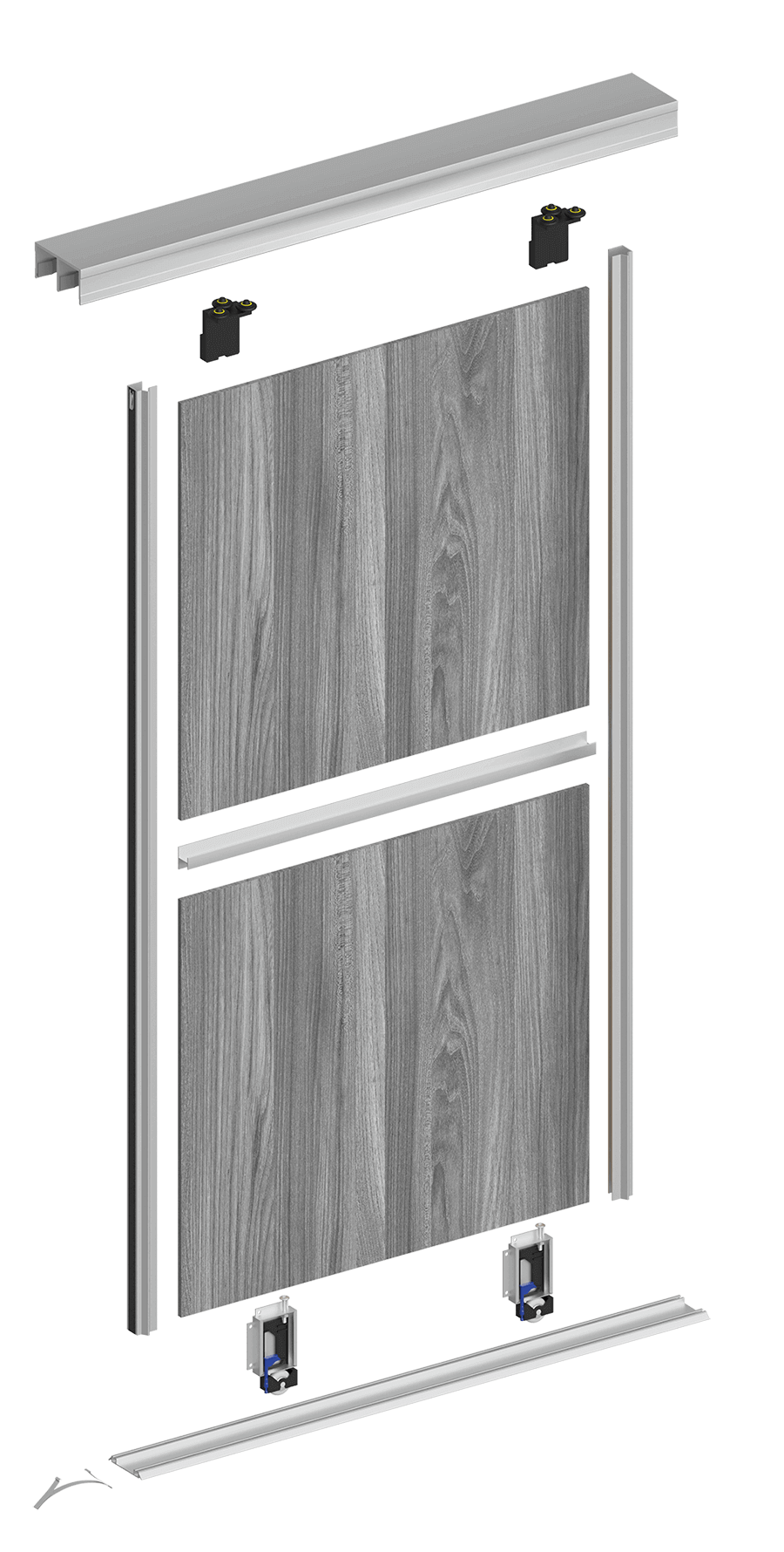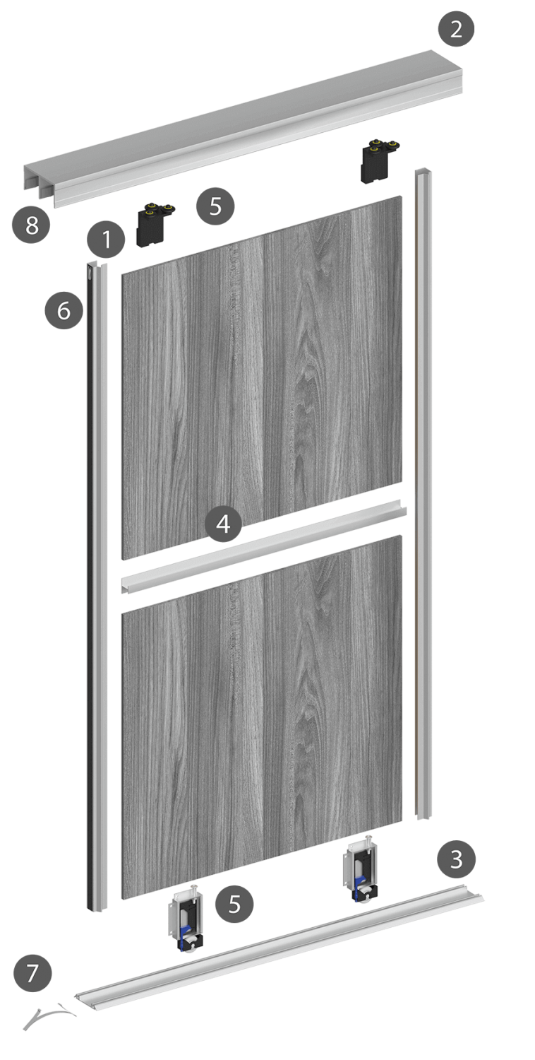 Комплект для сборки одной раздвижной двери из ЛДСП 16 мм включает: