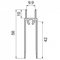 Крепится к вертикальному профилю винтом диаметром 6 мм через отверстие, просверленное в вертикали на расстоянии 42 мм от края профиля до центра отверстия. Внутри профиля размещаются нижние ролики, либо механизмы для подвесных дверей.