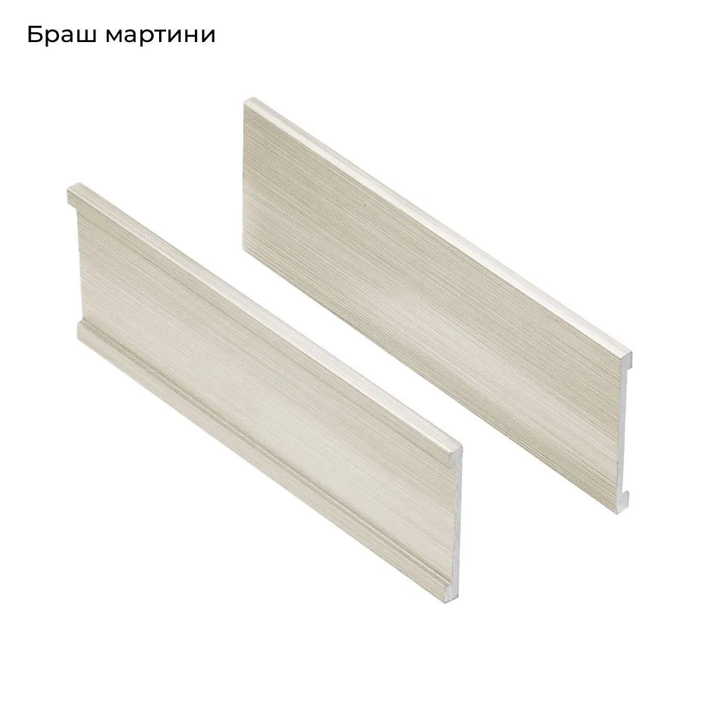 Профиль позволяет визуально разделять цельное полотно двери. Две лицевые стороны: гладкая и с пазом, который может декорироваться мебельной кромочной лентой 19 мм. Размеры идентичны